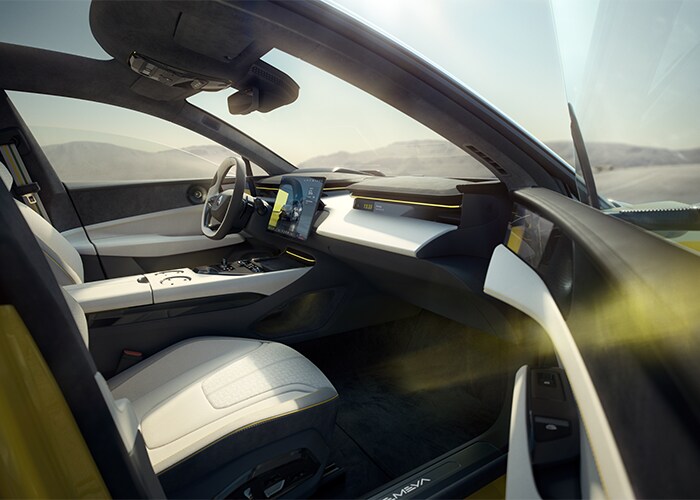 Gorgeously designed to steal the show, the Emiya boasts luxuriously fine details straight from the runway with high-end, sustainable, upcycled fabrics. The chic upholstery is perfectly paired with modern carbon fiber details that reduce the overall weight for exceptional performance and enhance the driver-focused cockpit.