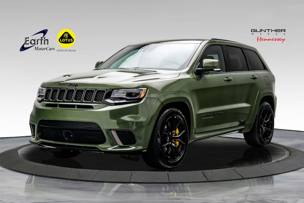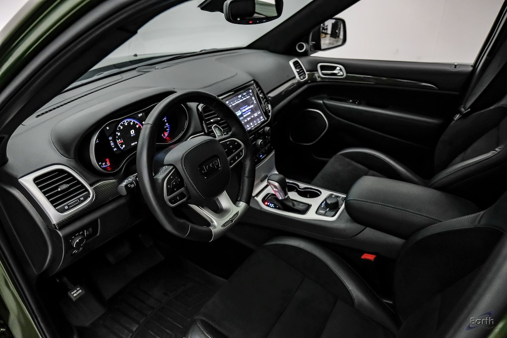 Earth MotorCars is Proud to offer this amazing: 2021 Jeep Grand Cherokee Trackhawk Rare Color Low Miles Dual-Pane Pano Roof Clean CARFAX. CLEAN AUTOCHECK REPORT, Green Metallic ClearCoat Exterior Paint $295.00, 4WD, 1-Year SiriusXM Guardian Trial, 19 Speakers High Performance Audio, 4-Wheel Disc Brakes, 4G LTE Wi-Fi Hot Spot, 7 & 4 Pin Wiring Harness, 8.4" Touchscreen Display, 825 Watt Amplifier, ABS brakes, Air Conditioning, Apple CarPlay, Auto-dimming door mirrors, Automatic temperature control, Class IV Receiver Hitch, Dual front impact airbags, Dual front side impact airbags, Dual-Pane Panoramic Sunroof, Electronic Stability Control, Front Bucket Seats, Fully automatic headlights, Google Android Auto, GPS Antenna Input, GPS Navigation, HD Radio, Heated front seats, Heated rear seats, Heavy-Duty Engine Cooling, High Performance Audio, Illuminated entry, Integrated Voice Command w/Bluetooth, Navigation System, Panic alarm, ParkView Rear Back-Up Camera, Power Liftgate, Premium Headliner Module, Quick Order Package 2XV, Radio: Uconnect 4C Nav w/8.4" Display, Rear window defroster, Remote keyless entry, Security system, SiriusXM Satellite Radio, SiriusXM Traffic Plus, SiriusXM Travel Link, Speed control, Steering wheel mounted audio controls, Tachometer, Traction control, Trailer Tow Group IV, Variably intermittent wipers, Ventilated front seats, Wheels: 20" x 10.0" Black Satin Aluminum.