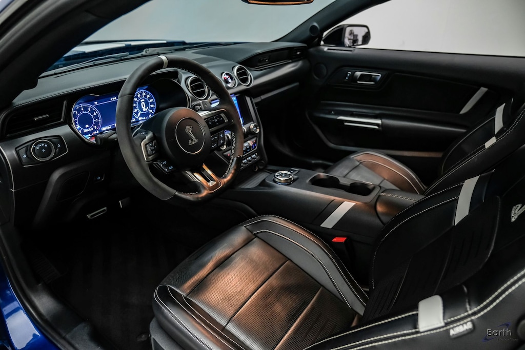 Earth MotorCars is Proud to offer this amazing: 2022 Ford Mustang Shelby GT500 Painted-Over-The-Top-Stripe Tech & Handling Pkg 4-Wheel Disc Brakes, ABS brakes, Air Conditioning, Auto-dimming Rear-View mirror, Automatic temperature control, BLIS Blind Spot Information System, Bumpers: body-color, Climate Controlled Front Seats, Compass, Dual front impact airbags, Dual front side impact airbags, Electronic Stability Control, Equipment Group 950A, Exterior Parking Camera Rear, Four wheel independent suspension, Front Bucket Seats, Front Center Armrest, Fully automatic headlights, Handling Package, Heated Mirrors, Illuminated entry, Knee airbag, Oxford White Over-the-Top Stripes, Painted Over-the-Top Racing Stripes, Panic alarm, Passenger door bin, Passenger vanity mirror, Radio: B&O Sound System by Bang & Olufsen, Rear window defroster, Remote keyless entry, Security system, Speed control, Spoiler, Steering wheel mounted audio controls, SYNC 3 Communications & Entertainment System, Tachometer, Technology Package, Telescoping steering wheel, Tilt steering wheel, Traction control, Trip computer, Variably intermittent wipers, Voice-Activated Touch-Screen Navigation System, Voltmeter, Wheels: 20" Flow Formed High Gloss Black Aluminum.