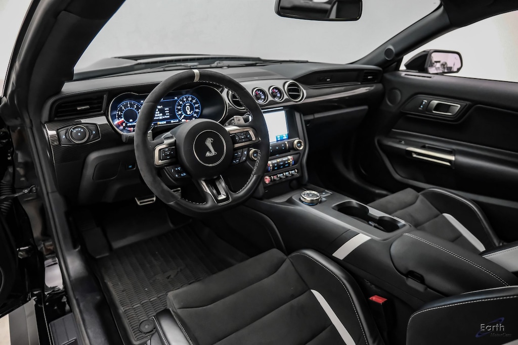 Earth MotorCars is Proud to offer this amazing: 2021 Ford Mustang Shelby GT500 Carbon Fiber Track Pack Tech Pack Stripe CARFAX One-Owner. Clean CARFAX. CLEAN AUTOCHECK REPORT, Rear Seat Delete, 4-Wheel Disc Brakes, Adaptive suspension, Adjustable Strut Top Mounts, Air Conditioning, AM/FM Stereo, Auto-dimming Rear-View mirror, Automatic temperature control, BLIS Blind Spot Information System, Bumpers: body-color, Carbon Fiber Track Pack, Dual front impact airbags, Dual front side impact airbags, Electronic Stability Control, Equipment Group 950A, Exposed Carbon Fiber GT4 Track Wing, Exposed Carbon Fiber Instrument Panel, Exterior Parking Camera Rear, Front Bucket Seats, Front Center Armrest, Fully automatic headlights, Heated Mirrors, Illuminated entry, Panic alarm, Radio: B&O Sound System by Bang & Olufsen, RECARO Leather-Trimmed Seats w/Miko Suede, Security system, SiriusXM Radio, Speed control, Steering wheel mounted audio controls, SYNC 3 Communications & Entertainment System, Tachometer, Technology Package, Telescoping steering wheel, Traction control, Trip computer, Variably intermittent wipers, Vinyl Over-the-Top Racing Stripe, Vinyl Side Stripes, Voice-Activated Touch-Screen Navigation System, Wheel Locking Kit, Wheels: 20" Exposed Carbon Fiber.