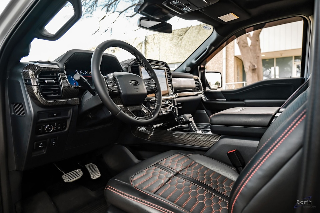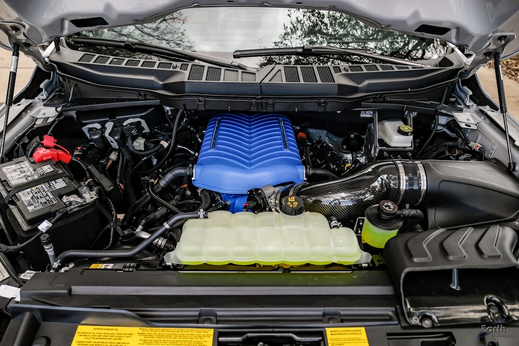 Earth MotorCars is Proud to offer this amazing: 2025 Ford F-150 Lariat Shelby 5.0L Supercharged V8 785HP Rare Space White! CARFAX One-Owner. Clean CARFAX. CLEAN AUTOCHECK REPORT, SPACE WHITE METALLIC 395.00, 5.0L Coyote V8 with a 3.0L Whipple Supercharger, 785 Horsepower, 685 lb-ft, 10-speed automatic, Borla performance exhaust with dual black tips, 6-inch lift system, Shelby by Fox 2.5" aluminum body shocks with adjustable dual-speed controls, 22-inch Shelby alloy wheels with 35-inch BFGoodrich All-Terrain KO3 tires., Functional front fender vents, rock sliders, and power-deploying steps, Custom functional dual-intake hood, Racing stripes, Shelby badging, and a painted tonneau cover, LED lighting with specific front grilles and bumper systems, Custom two-tone leather seats with Snake logo embroidery and red accents, Carbon fiber package (dash, door panels, center console), Serialized Shelby dash plaque, Billet racing pedals, 360-degree camera, digital instrument cluster, and Bang & Olufsen sound system, Ford Co-Pilot360 2.0 (lane centering, adaptive cruise control), BlueCruise (hands-free highway driving), 4WD, 4-Wheel Disc Brakes, 6" Angular Bright Anodized Step Bar, ABS brakes, ActiveX Trimmed Bucket Seats (B), Air Conditioning, AM/FM radio: SiriusXM with 360L, Auto High-beam Headlights, Auto-dimming door mirrors, Automatic temperature control, Black Exterior Badging, Black Grille, Black Taillamp Bezels, Body-Color Front & Rear Bumpers, Body-Color Skull Caps & Door Handles, Console Worksurface, Dark Interior Appliques, Dual front impact airbags, Dual front side impact airbags, Electronic Locking w/3.73 Axle Ratio, Electronic Stability Control, Equipment Group 501A Mid, Front Bucket Seats, Gray Box Side Decal, GVWR: 7,100 lbs Payload Package, Heated front seats, Illuminated Driver & Passenger Visors, Lariat Black Appearance Package, Matte Black Tailgate F-150 Decal, Mobile Office Package, Navigation system: Connected Navigation, Panic alarm, Partitioned Lockable Rear Storage, Power-Sliding Rear Window, Radio: B&O Sound System by Bang & Olufsen, Rear window defroster, Remote keyless entry, Security system, Speed control, Steering wheel mounted audio controls, SYNC 4 w/Enhanced Voice Recognition, Tachometer, Telescoping steering wheel, Trip computer, Twin Panel Moonroof, Ventilated front seats, Voltmeter, Wheel Well Liner, Wireless Charging.