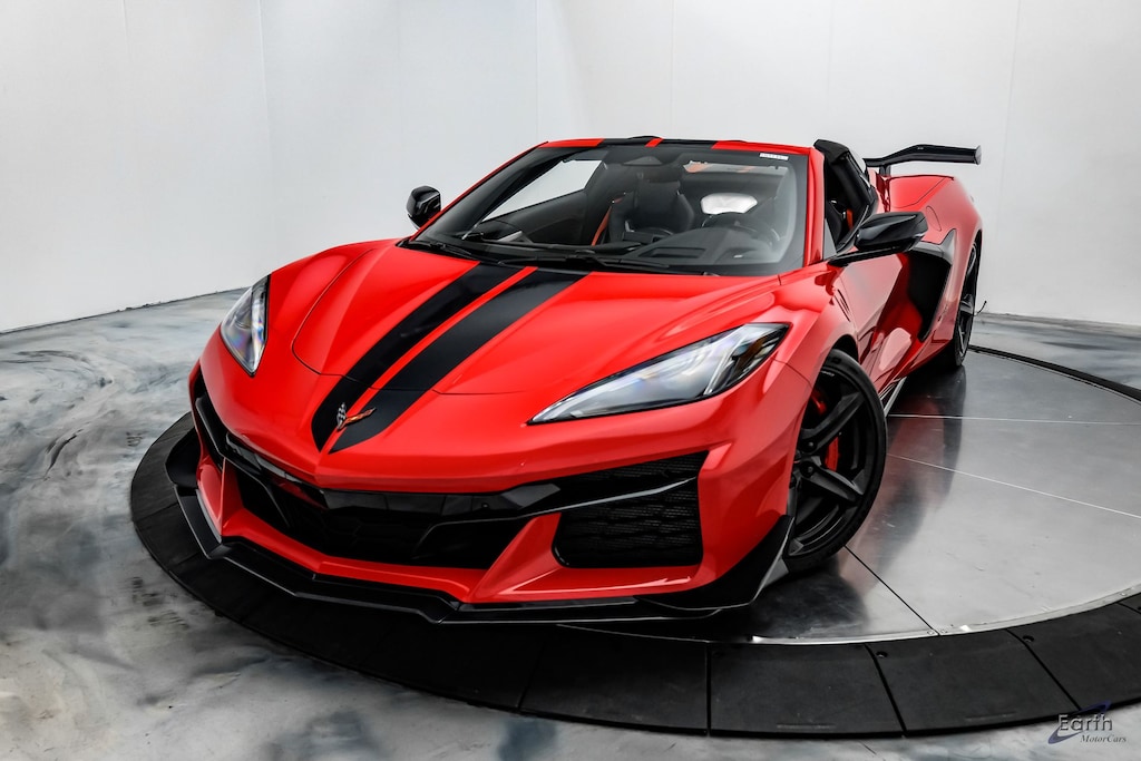 Earth MotorCars is Proud to offer this amazing: 2025 Chevrolet Corvette Z06 3LZ Over $49,000 in Factory Options! CARFAX One-Owner. 2 Cargo Nets, 4-Wheel Antilock 4-Wheel Disc Carbon Ceramic Brakes, 4-Wheel Disc Brakes, 8-Way Power Driver Seat Adjuster, 8-Way Power Passenger Seat Adjuster, Adaptive suspension, Adrenaline Red Custom Leather Stitch, Air Conditioning, Auto High-beam Headlights, Auto-dimming door mirrors, Auto-dimming Rear-View mirror, Automatic Leveling System Headlamp Control, Automatic temperature control, Battery Protection Package, Black Exhaust Tips, Black Lug Nuts (LPO), Black Wheel Locks (LPO), Bose Performance Series Sound System w/14 Speakers, Bright Red-Painted Calipers, Carbon Fiber Level 2 Interior Trim, Carbon Fiber/Sueded Microfiber-Wrap Steering Wheel, Carbon Flash Metallic Dual Racing Stripes, Carbon Flash Metallic Painted Outside Mirrors, Carbon Flash Metallic-Painted Outside Mirrors, Carbon Flash-Painted Carbon Fiber Carbon Aero, Carbon-Flash Painted Carbon Fiber Ground Effects, Competition Sport Bucket Seats, Convertible HardTop, Convertible roof lining, Convertible Top w/Carbon Flash Nacelles, Custom Leather Wrapped Interior Package, Dark Gray Metallic-Painted Calipers, Driver Power Bolster Seat Adjuster, Dual front impact airbags, Dual front side impact airbags, Electrical Theft Deterrent System, Electronic Stability Control, Exterior Parking Camera Rear, Front Bucket Seats, Front Center Armrest, Front Lift Adjustable Height w/Memory, Fully automatic headlights, Glass rear window, HD Front & Rear Vision Cameras, Heads-Up Display, Heated & Vented Driver & Passenger Seats, Heated door mirrors, Heated front seats, Heated Steering Wheel, Illuminated entry, Memory Driver & Passenger Convenience Package, Napa Lthr Seating Surfaces w/Sueded Inserts, Navigation System, Passenger Power Bolster Seat Adjuster, Performance Data & Video Recorder, Power convertible roof, Power Driver Lumbar Control Seat Adjuster, Power Passenger Lumbar Control Seat Adjuster, Power-Adjustable Outside Heated Mirrors, Preferred Equipment Group 3LZ, Premium Carpeted Floor Mats, Radio: Chevrolet Infotainment 3 Premium System, Rear Cross Traffic Alert, Rear window defroster, Remote keyless entry, Security system, Side Blind Zone Alert, Speed control, Spoiler, Steering wheel mounted audio controls, Sueded Microfiber-Wrapped Upper Interior Trim Pkg, Tachometer, Torch Red Seat Belt Color, Traction control, Universal Home Remote, Variably intermittent wipers, Vehicle Inclination Theft Deterrent Sensor, Vehicle Interior Movement Theft Deterrent Sensor, Ventilated front seats, Visible Carbon Fiber Sill Plates (LPO), Wheels: 20" x 10" Fr/21" x 13" Rr Carbon Flash, Wireless Charging for Devices, Z07 Performance Package, Z07 Suspension w/Magnetic Selective Ride Control.