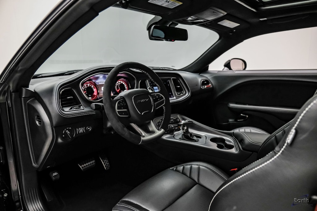 Earth MotorCars is Proud to offer this amazing: 2023 Dodge Challenger SRT Hellcat Widebody Jailbreak Moonroof Leather CARFAX One-Owner. Clean CARFAX. CLEAN AUTOCHECK REPORT, TorqueFlite 8Speed Automatic Transmission $2,995, Midnight Metallic Exterior Badging $199, 1-Yr SiriusXM Guardian Trial, 18 Speakers Premium Audio System, 4G LTE Wi-Fi Hot Spot, 5-Year SiriusXM Traffic Service, 5-Year SiriusXM Travel Link Service, 8.4" Touchscreen Display, Air Conditioning, All Radio Equipped Vehicles, All VP4R Radios, Apple CarPlay, Automatic temperature control, Black Brake Calipers, Black Seat Belts, Blind Spot & Cross Path Detection, Body Color Exterior Mirrors, Compass Gauge, Demonic Red Seat Belts, Driver Convenience Group, Dual front impact airbags, Dual front side impact airbags, Exterior Mirrors w/Heating Element, For Details, Visit DriveUconnect.com, For More Info, Call 800-643-2112, Google Android Auto, GPS Antenna Input, GPS Navigation, harman/kardon Audio Group w/Subwoofer, harman/kardon GreenEdge Amp, HD Radio, Heated Front Seats, Heated Steering Wheel, Hellcat Logo Laguna Leather Seat, High-Intensity Discharge Headlamps, Integrated Center Stack Radio, Integrated Voice Command w/Bluetooth, Jailbreak IP Badge, Laguna Leather Package (DISC), Media Hub (2 USB, AUX), Power Multi-Function Foldaway Mirrors, Power Sunroof, Power Tilt/Telescope Steering Column, Premium Laguna Door Trim Panel, Premium-Stitched Dash Panel, Quick Order Package 26C Hellcat Widebody Jailbreak, Radio: Uconnect 4C Nav w/8.4" Display, Radio: Uconnect 4C w/8.4" Display, Radio/Driver Seat/Mirrors Memory, Rear window defroster, Red LED Alcantara Steering Wheel, Shark Fin Antenna, SiriusXM Radio Service, SiriusXM Satellite Radio, SiriusXM Traffic Plus, SiriusXM Travel Link, Suede Headliner, Surround Sound, Trunk Mounted Subwoofer, USB Host Flip, Ventilated Front Seats, Wheels: 20" x 11.0" Devil's Rim Granite, Wheels: 20" x 9.5" Low Gloss Black Drag, Widebody Competition Suspension, Widebody Fender Flares.