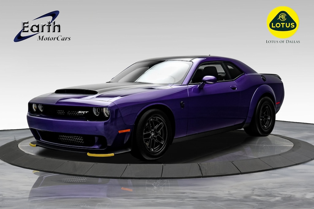 Earth MotorCars is Proud to offer this amazing: 2023 Dodge Challenger SRT Demon 170 CARBON WHEELS AND SUNROOF CARFAX One-Owner. Clean CARFAX. Carbon Fiber Wheels, 1 Year NMCA/NHRA Membership, 1-Yr SiriusXM Guardian Trial, 170 Drag Suspension, 2-Speaker Minimal Audio, 3.09 Rear Axle Ratio, 4-Piston Brakes w/Yellow Logo, 4G LTE Wi-Fi Hot Spot, 6 Speakers, 8.4" Touchscreen Display, ABS brakes, Adaptive suspension, Air Conditioning, Air-Grabber Hood, Alcantara Appearance Package DISC), Alcantara/Laguna Seats w/Logo, Alloy wheels, AM/FM radio: SiriusXM, Apple CarPlay/Android Auto, Auto-dimming Rear-View mirror, Black Brake Calipers, Black Seat Belts, Body Color Exterior Mirrors, Bumpers: body-color, Compass, DC Illuminated Air Catcher Headlamps, Delay-off headlights, Delete Sound Insulation, Delete Trunk Carpet, Delete Trunk Lamp & Bright Pedals, Electronic Stability Control, Exterior Mirrors w/Heating Element, Exterior Plastics Module, Flex Fuel Vehicle, For Details, Visit DriveUconnect.com, For More Info, Call 800-643-2112, Front Bucket Seats, Front Center Armrest, Garage door transmitter, Google Android Auto, HD Radio, Heated door mirrors, Heated Front Seats, Heated front seats, Heated Steering Wheel, High-Intensity Discharge Headlamps, Illuminated entry, Integrated Center Stack Radio, Low tire pressure warning, Outside temperature display, Overhead console, Panic alarm, ParkView Rear Back-Up Camera, Power door mirrors, Power driver seat, Power steering, Power Sunroof, Power Tilt/Telescope Steering Column, Premium-Stitched Dash Panel, Radio: Uconnect 4C w/8.4" Display, Radio/Driver Seat/Mirrors Memory, Real Carbon Fiber Interior Accents, Rear Body Flares, Red LED Alcantara Steering Wheel, Remote keyless entry, Satin Black Dodge Tail Lamp Badge, Security system, SiriusXM Radio Service, SiriusXM Satellite Radio, Speed control, Spoiler, SRT Demon 170, SRT Demon 170 Exterior Badging, SRT Demon 170 IP Badge, SRT Hellcat Logo Houndstooth Seats, SRT Performance Spoiler, Suede Door Trim Panel w/Map Pocket, Tachometer, Telescoping steering wheel, Traction control, Transbrake, Tri-Zone A/C, Variably intermittent wipers, Ventilated Front Seats, Wheels: 18" x 8" Fr & 17" x 11" Rr Forged Aluminum.