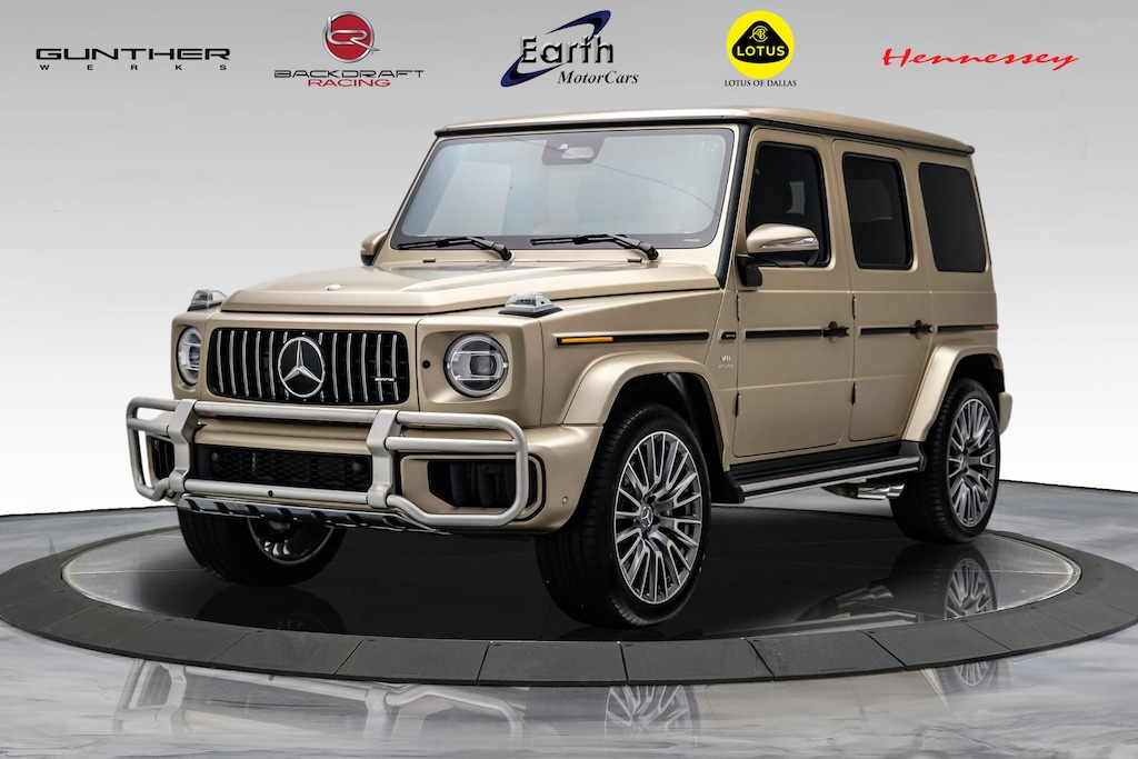 Earth MotorCars is Proud to offer this amazing: 2026 Mercedes-Benz G-Class G 63 AMG 4MATIC Interior Package Plus Clean CARFAX. CLEAN AUTOCHECK REPORT, MANUFAKTUR Kalahari Gold Magno $6,500.00, MANUFAKTUR Black Piano Lacquer trim $1,300.00, (4) All-Season Floor Mats with G Logo, 4-Wheel Disc Brakes, ABS brakes, Air Conditioning, AM/FM radio: SiriusXM, Animated LED Logo Projectors, Auto High-beam Headlights, Auto tilt-away steering wheel, Auto-dimming door mirrors, Auto-dimming Rear-View mirror, Automatic temperature control, Bodyside moldings, Bumpers: body-color, Burmester 3D Surround Sound System, Dash Cam, Dual front impact airbags, Dual front side impact airbags, Electronic Stability Control, Exterior Parking Camera Rear, First Aid Kit, Front Bucket Seats, Garage door transmitter: HomeLink, Illuminated entry, Knee airbag, Leather Grab Handles, MANUFAKTUR Interior Package Plus, Navigation system: MBUX, Overhead airbag, Passenger vanity mirror, Power adjustable front head restraints, Power moonroof, Rear air conditioning, Rear window defroster, Remote keyless entry, Rubber Mat For Load Compartment, Rubber Mat Set, Speed control, Steering wheel mounted audio controls, Tachometer, Telescoping steering wheel, Traction control, Tri-Zone A/C, Variably intermittent wipers, Wheels: 22" AMG Himalaya Grey Multi-Spoke Forged.