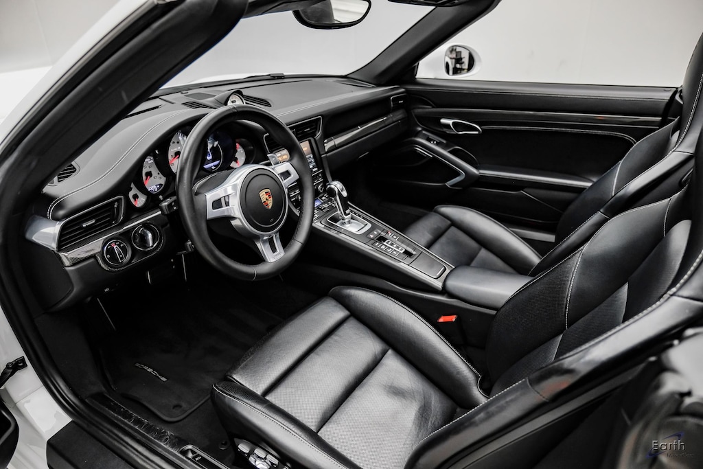 Earth MotorCars is Proud to offer this amazing: 2016 Porsche 911 Turbo S Huge $210,140 MSRP! Clean CARFAX. AWD, 4-Wheel Disc Brakes, Air Conditioning, Armrest Stitching in Deviated Thread, Auto-dimming door mirrors, Automatic temperature control, Burmester High-End Infotainment Package, Center Door Panel Stitching in Deviated Thread, Ceramic disc brakes: front and rear, Clear Glass Taillights, Dashboard Stitching in Deviating Color, Door Handle Stitching in Deviated Thread, Dual front impact airbags, Dual front side impact airbags, Four wheel independent suspension, Front & Rear Seat Stitching in Deviating Color, Front Bucket Seats, Front Center Armrest, Fully automatic headlights, Gear Selector in Aluminum, Illuminated entry, Instrument Dials in White, LED Headlights in Black, Light Design Package, Porsche Crest on Headrests, Power convertible roof, Power Steering Plus, Premium Package Plus, Rear window defroster, Remote keyless entry, Security system, Sport Chrono Clock Dial in White, Sport Seats Plus Backrest Shell w/Deviated Thread, Sport Seats Plus Backrest Trim in Leather, Steering Column Casing in Leather, Steering Wheel Rim w/Deviating Stitching, Tachometer, Traction control, Variably intermittent wipers, Wheels: 20" 911 Turbo S.