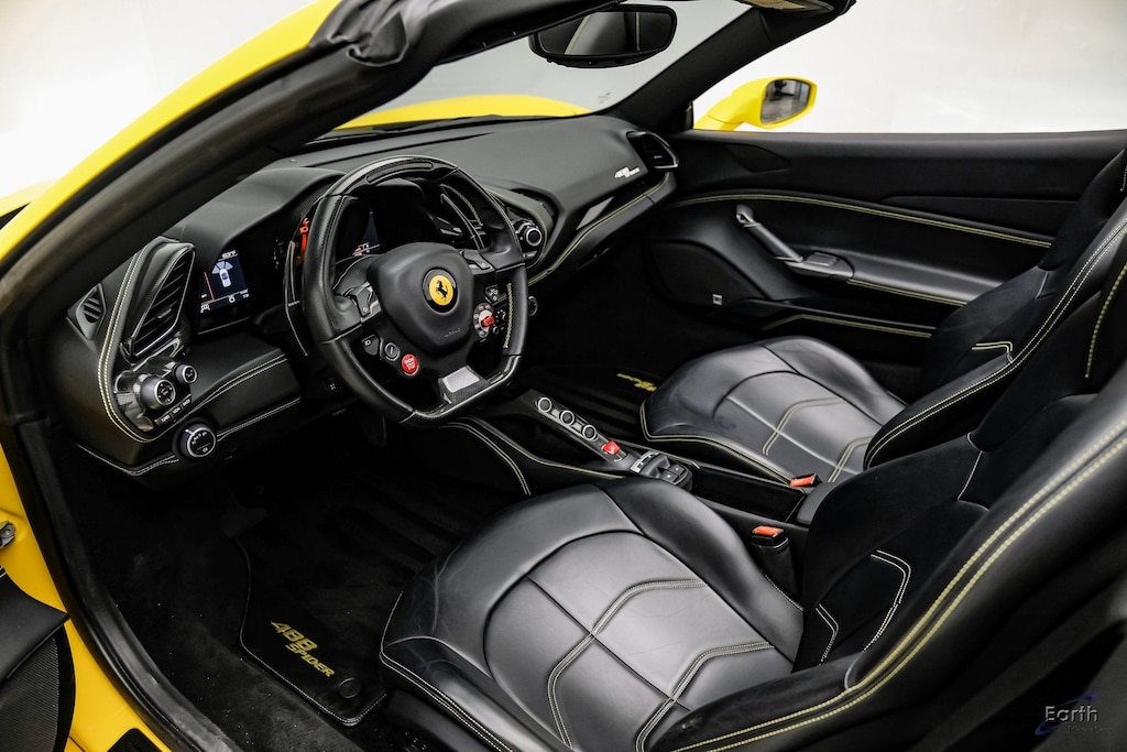 Earth MotorCars is Proud to offer this amazing: 2017 Ferrari 488 Spider Great Spec Rear Camera, ABS brakes, Adaptive suspension, Air Conditioning, Alloy wheels, Apple CarPlay, Automatic temperature control, Bumpers: body-color, Carbon Fiber Central Bridge, Carbon Fiber Dashboard Inserts, Carbon Fiber Driver Zone, Carbon Fiber Steering Wheel w/LED, Ceramic disc brakes: front and rear, Compass, Convertible HardTop, Electronic Stability Control, Embroidered Prancing Horse on Headrest, Four wheel independent suspension, Front & Rear Parking Sensors, Full Electrical Seats, Fully automatic headlights, Giallo Modena Brake Calipers, harman/kardon Speakers, Heated door mirrors, Illuminated entry, Leather Seat Trim, Low tire pressure warning, Navigation System, Outside temperature display, Parking Camera, Power convertible roof, Premium HiFi Sound System, Remote keyless entry, Scuderia Ferrari Shields, Sport steering wheel, Steering wheel mounted audio controls, Telescoping steering wheel, Traction control, Tri-Zone A/C, Upper Part in Leather.