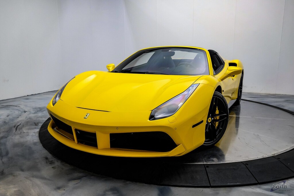 Earth MotorCars is Proud to offer this amazing: 2017 Ferrari 488 Spider Great Spec Rear Camera, ABS brakes, Adaptive suspension, Air Conditioning, Alloy wheels, Apple CarPlay, Automatic temperature control, Bumpers: body-color, Carbon Fiber Central Bridge, Carbon Fiber Dashboard Inserts, Carbon Fiber Driver Zone, Carbon Fiber Steering Wheel w/LED, Ceramic disc brakes: front and rear, Compass, Convertible HardTop, Electronic Stability Control, Embroidered Prancing Horse on Headrest, Four wheel independent suspension, Front & Rear Parking Sensors, Full Electrical Seats, Fully automatic headlights, Giallo Modena Brake Calipers, harman/kardon Speakers, Heated door mirrors, Illuminated entry, Leather Seat Trim, Low tire pressure warning, Navigation System, Outside temperature display, Parking Camera, Power convertible roof, Premium HiFi Sound System, Remote keyless entry, Scuderia Ferrari Shields, Sport steering wheel, Steering wheel mounted audio controls, Telescoping steering wheel, Traction control, Tri-Zone A/C, Upper Part in Leather.