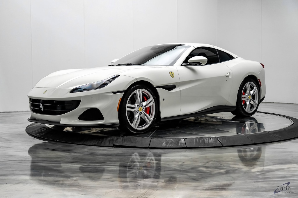 Earth MotorCars is Proud to offer this amazing: 2022 Ferrari Portofino M Fully Serviced Full Front PPF Surround View, Full Electric Seats, Back Radar, Ferrari Scuderia Shields, 7 Speakers, ABS brakes, Air Conditioning, AM/FM radio: SiriusXM, Apple CarPlay, Automatic temperature control, Bumpers: body-color, Convertible HardTop, Convertible roof lining, Delay-off headlights, Driver door bin, Dual front impact airbags, Dual front side impact airbags, Electronic Stability Control, Four wheel independent suspension, Front Bucket Seats, Front Center Armrest, Front reading lights, Fully automatic headlights, Glass rear window, Heated door mirrors, Illuminated entry, Leather Seat Trim, Navigation System, Outside temperature display, Overhead console, Passenger door bin, Passenger vanity mirror, Power convertible roof, Power door mirrors, Power driver seat, Power passenger seat, Power steering, Radio data system, Radio: AM/FM/Satellite, Rain sensing wipers, Rear fog lights, Rear seat center armrest, Rear window defroster, Rosso Corsa Brake Calipers, Security system, Speed control, Spoiler, Steering wheel mounted audio controls, Tilt steering wheel, Traction control, Trip computer, Wheels: 20" Forged Glossy Brilliant Silver, Yellow Rev Counter.