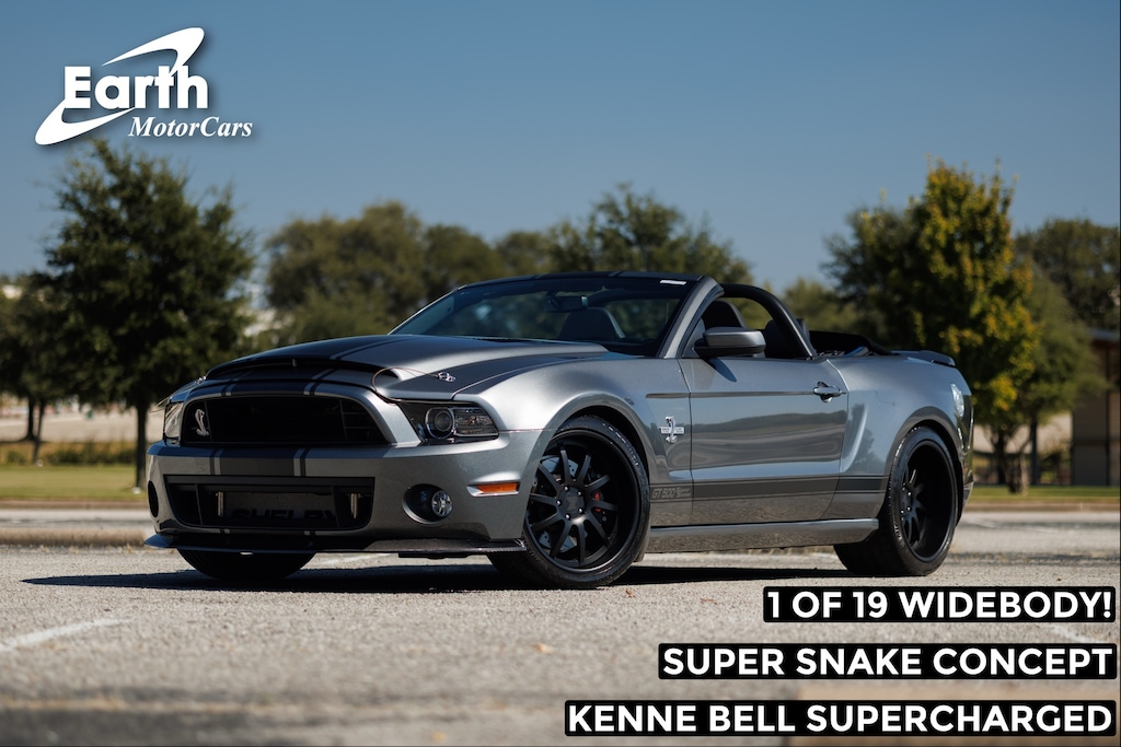 Earth MotorCars is Proud to offer this amazing: 2013 Ford Mustang Shelby GT500 Super Snake Concept Widebody 1 of 1 Built! Widebody Super Snake, CONCEPT 1 of 1, 19" x 9.5" Fr/20" x 9.5" Rr Unique Wheels, 4-Wheel Disc Brakes, 6-Way Power Driver's Seat, 8 Speakers, Air Conditioning, AM/FM radio: SiriusXM, Bumpers: body-color, CD player, Compass, Convertible roof lining, Dual front impact airbags, Dual front side impact airbags, Electronic Stability Control, Equipment Group 821A, Front Bucket Seats, Front Center Armrest, Front reading lights, Front wheel independent suspension, Fully automatic headlights, Garage door transmitter, High-Intensity Discharge Headlights, Illuminated entry, Leather Sport Bucket Seats, Passenger door bin, Passenger vanity mirror, Power door mirrors, Power steering, Premium audio system: Shaker, Radio data system, Radio: Shaker Audio AM/FM Stereo w/CDx1/MP3 System, Remote keyless entry, Security system, SIRIUS Satellite Radio, Speed control, Spoiler, Steering wheel mounted audio controls, SVT Engineered Bilstein Cockpit Selectable Dampers, SVT Performance Package, Tachometer, Tilt steering wheel, TORSEN Differential w/3.31 Axle Ratio, Variably intermittent wipers, Voltmeter.