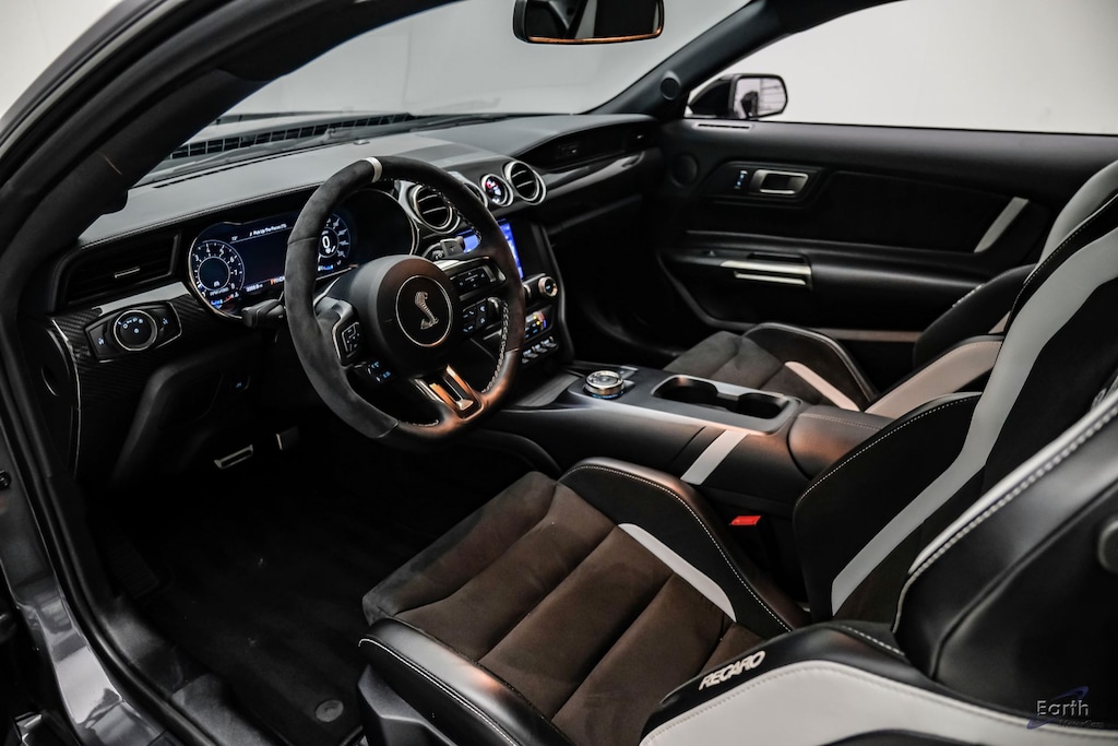 Earth MotorCars is Proud to offer this amazing: 2021 Ford Mustang Shelby GT500 Carbon Fiber Track Pack Tech Pack Stripe CARFAX One-Owner. 4-Wheel Disc Brakes, ABS brakes, Adjustable Strut Top Mounts, Air Conditioning, AM/FM radio: SiriusXM, AM/FM Stereo, Auto-dimming Rear-View mirror, Automatic temperature control, BLIS Blind Spot Information System, Bumpers: body-color, Carbon Fiber Track Pack, Compass, Dual front impact airbags, Dual front side impact airbags, Electronic Stability Control, Emergency communication system: 911 Assist, Equipment Group 950A, Exposed Carbon Fiber GT4 Track Wing, Exposed Carbon Fiber Instrument Panel, Exterior Parking Camera Rear, Four wheel independent suspension, Front Bucket Seats, Front reading lights, Fully automatic headlights, Heated Mirrors, Illuminated entry, Knee airbag, Panic alarm, Passenger door bin, Radio data system, Radio: B&O Sound System by Bang & Olufsen, Rear window defroster, RECARO Leather-Trimmed Seats w/Miko Suede, Remote keyless entry, Security system, SiriusXM Radio, Speed control, Speed-sensing steering, Speed-Sensitive Wipers, Spoiler, Steering wheel mounted audio controls, SYNC 3 Communications & Entertainment System, Tachometer, Technology Package, Telescoping steering wheel, Tilt steering wheel, Traction control, Trip computer, Vinyl Over-the-Top Racing Stripe, Voice-Activated Touch-Screen Navigation System, Wheel Locking Kit, Wheels: 20" Exposed Carbon Fiber.