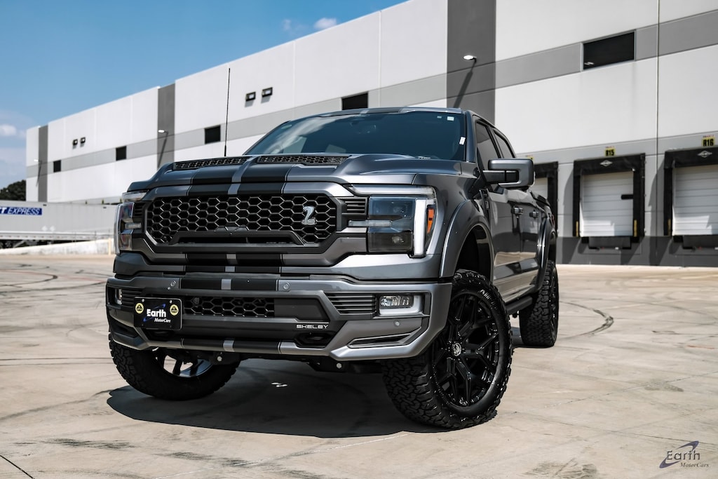 Earth MotorCars is Proud to offer this amazing: 2024 Ford F-150 Lariat Shelby 785 HP Whipple Superchargered LOADED! CARFAX One-Owner. 785+ HP, Whipple twin-screw supercharger, Performance plugs, injectors, heat exchanger, and an upgraded billet throttle body., Shelby by Borla performance exhaust, 35-inch premium all-terrain tires, 22-inch Shelby alloy wheels, Shelby by BDS 3-inch lift system, FOX 2.5 factory race series shocks with internal bypass technology, Dual-intake functional hood, Custom Shelby front grille, bumper cover, and fender flares, Shelby racing stripes and badging, Power-deploying running boards feature rock guard trim and entry lights., The cargo area is lined with a carpeted bed rug and a body-color tonneau cover, Shelby-specific black leather seats have been upgraded with red stitching and embroidery., Only 800 of the 2024 Shelby F-150 trucks were planned for the U.S. market., 4WD, 2nd Row Heated Seats, 4-Wheel Disc Brakes, 6" Extended Chrome Running Boards, ABS brakes, Adjustable pedals, Air Conditioning, Auto-dimming door mirrors, Automatic temperature control, Black Exterior Badging, Black Grille, Black Taillamp Bezels, Body-Color Front & Rear Bumpers, Body-Color Skull Caps & Door Handles, Console Worksurface, Dark Interior Appliques, Dual Exhaust w/Black Tips, Dual front impact airbags, Emergency communication system: SYNC 4 911 Assist, Equipment Group 502A High, Front Bucket Seats, Front Center Armrest, Fully automatic headlights, Gray Box Side Decal, Heads-Up Display, Heated front seats, Illuminated entry, In-Vehicle Safe By Console Vault, Integrated Trailer Brake Controller, Lariat Black Appearance Package, Leather-Trimmed Bucket Seats, Matte Black Tailgate F-150 Decal, Max Tow Electronic Locking w/3.73 Axle Ratio, Mobile Office Package, Partitioned Lockable Rear Storage, Radio: B&O Unleashed Sound System by Bang & Olufsen, Rain sensing wipers, Rear window defroster, Steering wheel mounted audio controls, Tow/Haul Package, Twin Panel Moonroof, Variably intermittent wipers, Ventilated front seats, Wheel Well Liner, Wireless Charging.