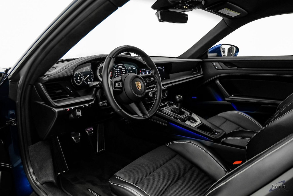 Earth MotorCars is Proud to offer this amazing: 2022 Porsche 911 GT3 Touring Package in Black Front Lift Bose 6-Speed Manual Clean CARFAX. CLEAN AUTOCHECK REPORT, Gentian Blue Metallic $950.00, 4-Way Sport Seats Plus, 4-Wheel Disc Brakes, ABS brakes, Air Conditioning, Ambient Lighting, Auto-Dimming Mirrors w/Integrated Rain Sensor, Automatic temperature control, BOSE Surround Sound System, Brake Calipers in High Gloss Black, Bumpers: body-color, Chrono Package w/Preparation for Lap Trigger, Dual front impact airbags, Dual front side impact airbags, Electronic Stability Control, Exterior Parking Camera Rear, Four wheel independent suspension, Front Axle Lift System, Front Bucket Seats, Front Center Armrest, Fully automatic headlights, Heated door mirrors, Illuminated entry, Leather/Fabric Seat Trim w/Leather Interior, Navigation system: Porsche Communication Management (PCM), Outside temperature display, Passenger vanity mirror, Rear ParkAssist, Rear window defroster, Remote keyless entry, Security system, Speed control, Spoiler, Sport steering wheel, Steering wheel mounted audio controls, Tachometer, Touring Package in Black, Traction control, Trip computer, Variably intermittent wipers, Wheels: 20" Front/21" Rear 911 GT3.