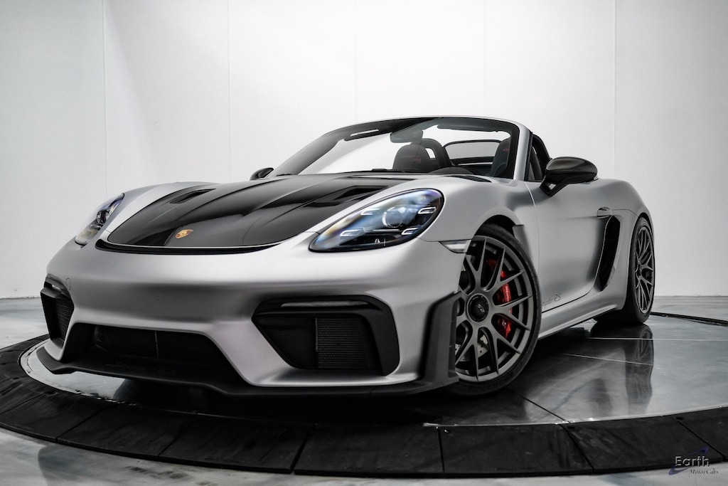 Earth MotorCars is Proud to offer this amazing: 2024 Porsche 718 Spyder RS Weissach Package 20" Cayman GT4 RS Magnesium Wheels Clean CARFAX. 18-Way Adaptive Sport Seats Plus, 4-Wheel Disc Brakes, ABS brakes, Air Conditioning, Auto Dimming Mirrors w/Integrated Rain Sensor, Automatic temperature control, BOSE Surround Sound System, Bumpers: body-color, Chrono Package, Chrono Stopwatch Dial in Guards Red, Delay-off headlights, Door Pull Loops in Guards Red, Driver vanity mirror, Dual front impact airbags, Dual front side impact airbags, Electronic Stability Control, Exterior Parking Camera Rear, Front Axle Lift System, Front Bucket Seats, Front Center Armrest, Glass rear window, Heated door mirrors, Heated Seats, Illuminated Door-Sill Guards in Carbon Fiber, Illuminated entry, Instrument Dials in Guards Red, Leather Seat Trim w/Race-Tex Centers & Lthr Int, LED Headlights w/Porsche Dynamic Light System, Light Design Package, Low tire pressure warning, Navigation System, Outside temperature display, Passenger vanity mirror, Porsche Communication Management, Rear window defroster, Remote keyless entry, Seat Belts in Guards Red, Security system, Smartphone Compartment, Smoking Package, Speed control, Spoiler, Steering Wheel & Gear Lever/Selector in Black Lthr, Sun Visors in Leather, Tachometer, Traction control, Tri-Zone A/C, Trip computer, Variably intermittent wipers, Weissach Package, Wheels: 20" 718 Cayman GT4 RS Forged Magnesium.