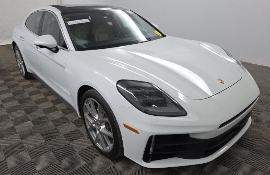 Earth MotorCars is Proud to offer this amazing: 2025 Porsche Panamera Premium Package 21" Sport Design Wheels CARFAX One-Owner. Clean CARFAX. CLEAN AUTOCHECK REPORT, Carrara White Metallic $830.00, Standard Interior in Black/Limestone Beige with Leather Seats $900.00, 14-Way Comfort Seats with Memory Package, 21" Panamera SportDesign Wheels, 4-Zone Climate Control, ABS brakes, Adaptive suspension, Air Conditioning, Air Quality System, Alloy wheels, Apple CarPlay & Android Auto, Auto-dimming door mirrors, Auto-dimming Rear-View mirror, Auto-leveling suspension, Automatic temperature control, BOSE Surround Sound System, Brake assist, Bumpers: body-color, Compass, Dual front impact airbags, Dual front side impact airbags, Electronic Stability Control, Exterior Parking Camera Rear, Four wheel independent suspension, Front anti-roll bar, Front Bucket Seats, Front Center Armrest, Front reading lights, Fully automatic headlights, HD-Matrix Design LED Headlights, Heated door mirrors, Heated front seats, Heated steering wheel, Illuminated entry, Low tire pressure warning, Navigation System, Outside temperature display, Panic alarm, Porsche InnoDrive with Active Lane Keeping, Power Liftgate, Power moonroof, Power passenger seat, Premium Package, Radio data system, Rain sensing wipers, Rear Heated Seats, Rear side impact airbag, Rear window defroster, Remote keyless entry, Security system, Speed control, Split folding rear seat, Spoiler, Surround View with Active Parking Support, Tachometer, Telescoping steering wheel, Tilt steering wheel, Traction control, Tri-Zone A/C, Trip computer, Variably intermittent wipers, Ventilated Front Seats, Wheel Center Caps with Colored Porsche Crest.
