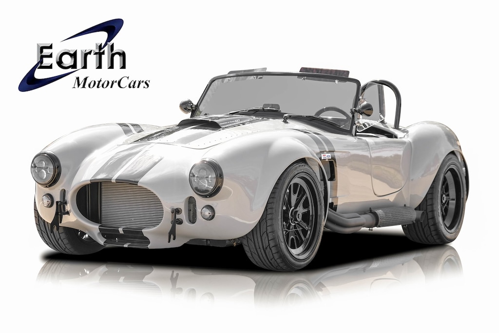 • Earth MotorCars is proud to offer this 1965 Shelby Cobra by Backdraft Racing. This RT4 Model is finished in Chalk paint along with black stripes. This RT4 is also fitted with the GT body for some added flare to the classic Cobra design. Under the hood of this Cobra sits a Iconic 427CI V8 pushing out 500hp. The427 V8 is decked out with a Holley carburetor