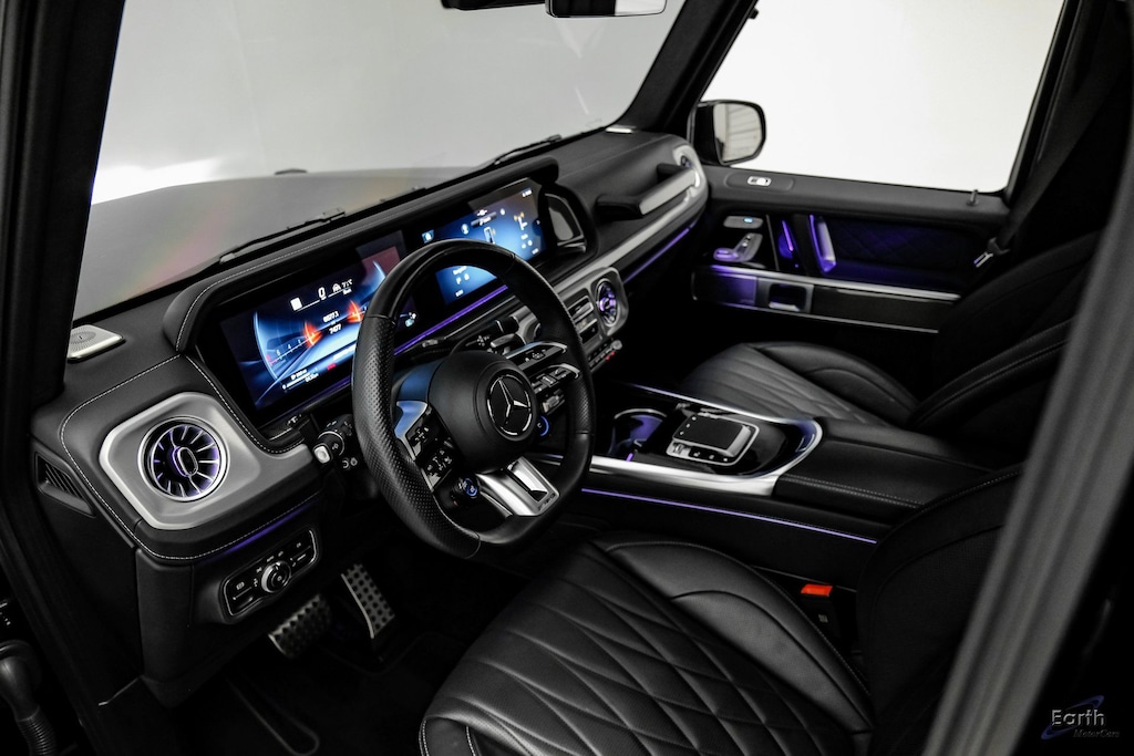Earth MotorCars is Proud to offer this amazing: 2025 Mercedes-Benz G-Class G 63 AMG 4MATIC CARFAX One-Owner. Clean CARFAX. 18 Speakers, 4-Wheel Disc Brakes, Adaptive suspension, Air Conditioning, AMG Night Package, AMG Night Package (P56), Apple CarPlay/Android Auto, Auto High-beam Headlights, Auto tilt-away steering wheel, Auto-dimming door mirrors, Automatic temperature control, Brush Guard in Black, Burmester 3D Surround Sound System, Drive-Dynamic Multicontour Front Seats w/Massage, Dual front side impact airbags, Electronic Stability Control, Emergency communication system: Mercedes-Benz Emergency Call Service, ENERGIZING Package Plus, Exclusive Interior Package Plus, Exclusive Nappa Leather Trim, Exterior Mirrors Painted in Obsidian Black, Exterior Parking Camera Rear, Front Ventilated Seats, Garage door transmitter: HomeLink, Head restraints memory, Headlight cleaning, Heated Front Seats, MANUFAKTUR Exclusive Single-Tone Leather Trim, MANUFAKTUR Interior Package Plus (P77), Navigation system: MBUX, Power door mirrors, Power driver seat, Rapid Heating Front Seats, Seat Comfort Package, Security system, Spare Wheel Cover in Obsidian Black, Speed control, Speed-sensing steering, Steering wheel memory, Underguard in Obsidian Black, Variably intermittent wipers, Wheels: 22" AMG Matte Black Cross-Spoke Forged.