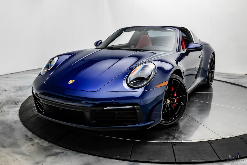 Earth MotorCars is Proud to offer this amazing: 2024 Porsche 911 Targa 4 GTS Premium Pkg Sport Pkg Black Carrera Classic Wheels Clean CARFAX. CLEAN AUTOCHECK REPORT, Gentian Blue Metallic $840.00, Sport Package $4,630.00, 20"/21" Carrera Classic Wheels $1,260.00, AWD, 14-Way Power Sport Seats w/Memory Package, 4-Wheel Disc Brakes, ABS brakes, Air Conditioning, Ambient Lighting, Auto-dimming door mirrors, Automatic temperature control, BOSE Surround Sound System, Bumpers: body-color, Deviated Leather Seat Centers, Dual front impact airbags, Dual front side impact airbags, Electronic Stability Control, Exterior Parking Camera Rear, Four wheel independent suspension, Front Bucket Seats, Fully automatic headlights, Glass rear window, GT Sport Steering Wheel in Leather, Heated door mirrors, Lane Change Assist (LCA), Leather Seat Trim w/Two-Tone Leather Interior, Locking Wheel Bolts, Navigation system: Porsche Communication Management (PCM), Porsche Communication Management, Porsche Crest on Front Headrests, Power Folding Exterior Mirrors, Premium Package, Rear window defroster, Security system, Sound Package Plus, Speed control, Spoiler, Steering wheel mounted audio controls, Storage Package, Surround View, Traction control, Under Door Puddle Light Projectors, Variably intermittent wipers, Wheels Painted in Exterior Color.